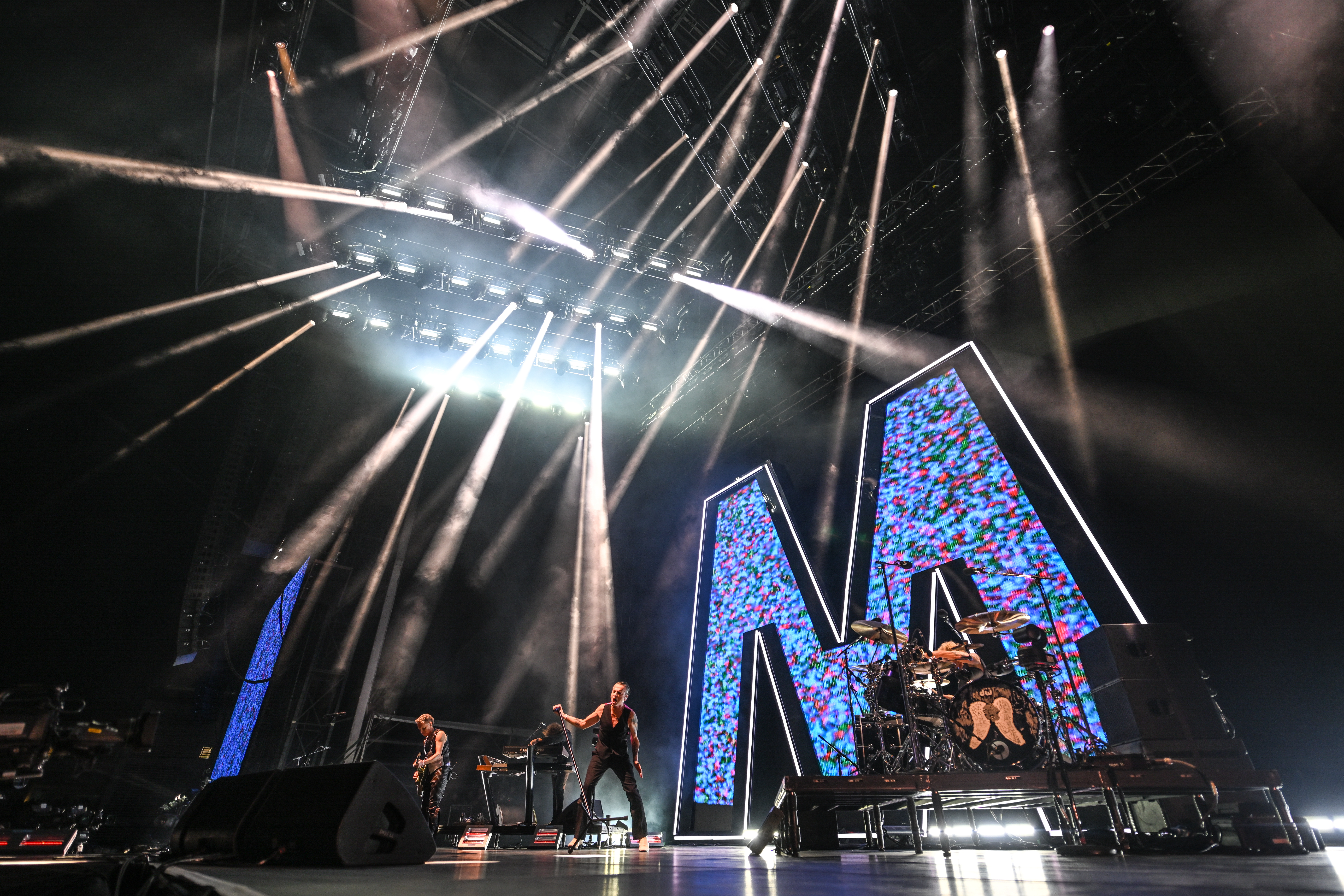 All dies schmälert jedoch nicht die Wirkung des Films. Die Gänsehautmomente sind trotzdem da: die berührende Hommage an Andy Fletcher während „World In My Eyes“; Dave Gahan, der wie eine Energiebombe pirouettiert und posiert, als würde selbst sein Pilates-Trainer applaudieren; und Martin Gore, der mit schelmischem Halbgrinsen das Leitmotiv von „Everything Counts“ einfingerig eintippt, wohlwissend, dass diese einfache Melodie das Publikum seit vierzig Jahren elektrisiert. „Speak To Me“ trifft weiterhin mitten ins Herz, „Wrong“ ballt vor ohnmächtiger Wut die Fäuste, und während „Stripped“ beobachten wir mit blasierter Miene den Wald aus Mobiltelefonen, während Dave singt: „Let me hear you make decisions / Without your television…“ – und das Publikum den Hinweis natürlich überhört. Dafür umso mehr beim Armschwenken zu „Never Let Me Down Again“, seit über fünfunddreißig Jahren Pflichtprogramm.