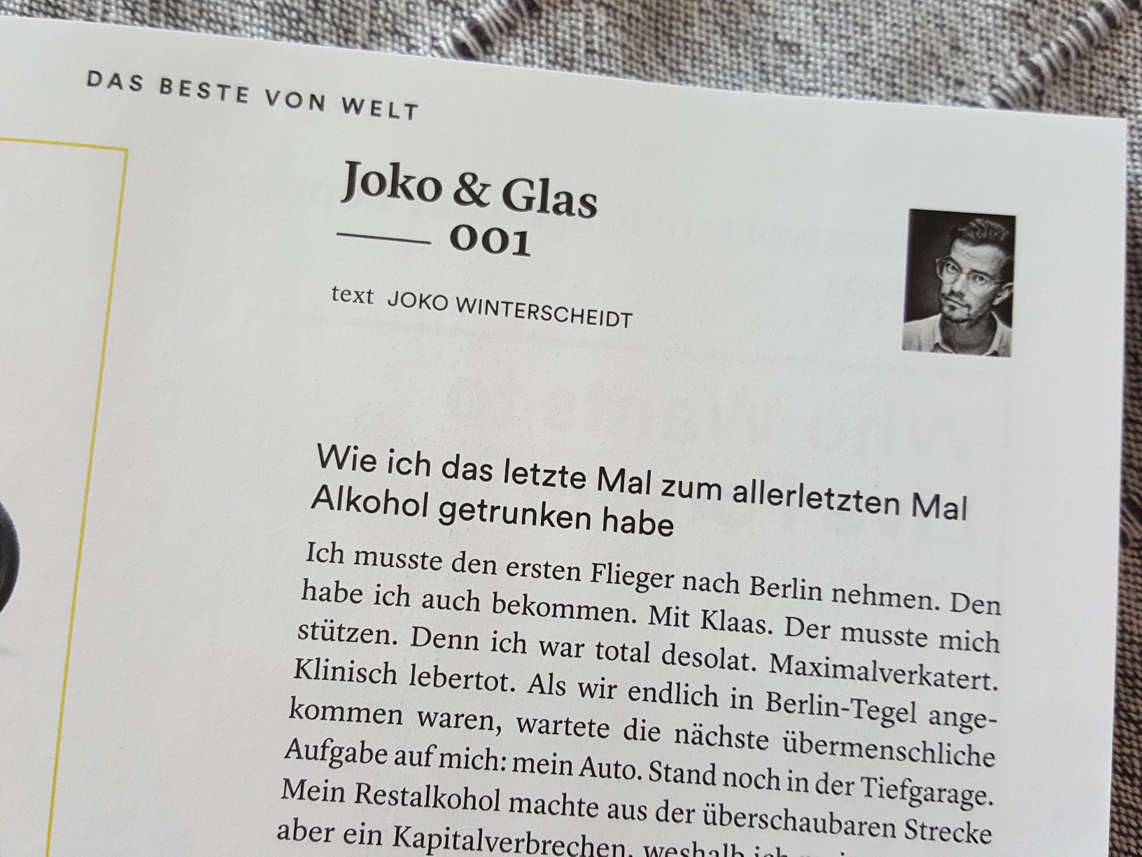 BJ Ganz generell muss ich sagen, dass ich Joko als Mensch eigentlich ganz sympathisch finde. Er weiß halt genau, was er macht – und wenn das eben abcashen bedeutet, kann man diese Taktik im Spätkapitalismus wohl kaum einer Größe wie ihm alleine verübeln. In Zeiten, in denen man ohnehin nur noch was verkaufen kann, wenn man Promi ist und/oder 100k+ Follower hat, war es wahrscheinlich auch nicht die dümmste Idee, das inhaltlich metrosexuell-links angehauchte JWD-Magazin mit Jokos Gesicht und Namen zu branden. Das „Problem“ ist halt, dass man dem Magazin anmerkt, dass Joko hauptsächlich sein Gesicht und seinen Namen hergegeben hat – und bei den ganzen aufschneiderischen Aktionen und Anekdoten nicht unbedingt voll bei der Sache war – also Beispiel sehe ich da: Sein gelangweiltes Gesicht und Mini-Kommentar bei der Sexpuppenbordell-Geschichte.
