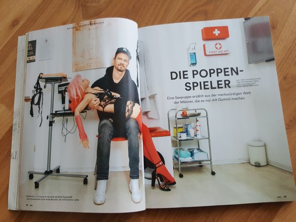 LV Es sieht mit den Groß-Foto-Trenner-Seiten alles sehr nach neon aus. Bin mir sicher, dort schauen alle etwas nervös auf diese Zeitgeist-Mutation hier. Beim Einstieg nervt mich natürlich auch, wie Thomas schon erwähnte, dass werbliches und redaktionelle Mini-slots bewusst miteinander verwoben sind. Attraktives Umfeld für den Kunden. Dazu wirkt die Themenauswahl völlig zufällig, allerdings dabei schon unterhaltsam. Aber lasst uns wirklich jetzt mal bei den großen Geschichten ankommen, es tauchte ja einiges bereits auf. Die thematische Tonalität wird für mich gleich vorgegeben von dieser Story über Sexpuppen und das dazugehörige Sexpuppenbordell. Ich verstehe, dass man aus sowas Reportagen macht, aber ich finde dennoch, es hat wenig Ehre. Das sind doch so low hanging fruits auf halbem Weg zur Soft-Porno-Abteilung. Außerdem erscheint mir die Erzählperspektive völlig kaputt. Der Gedanke, dass man aus der Sicht der Puppe schreibt, wirkt auf mich schon mega bemüht um Originalität – aber okay. Doch dann wird diese Perspektive gar nicht durchgehalten, ist nicht konsistent. So nicht, ihr Maden!