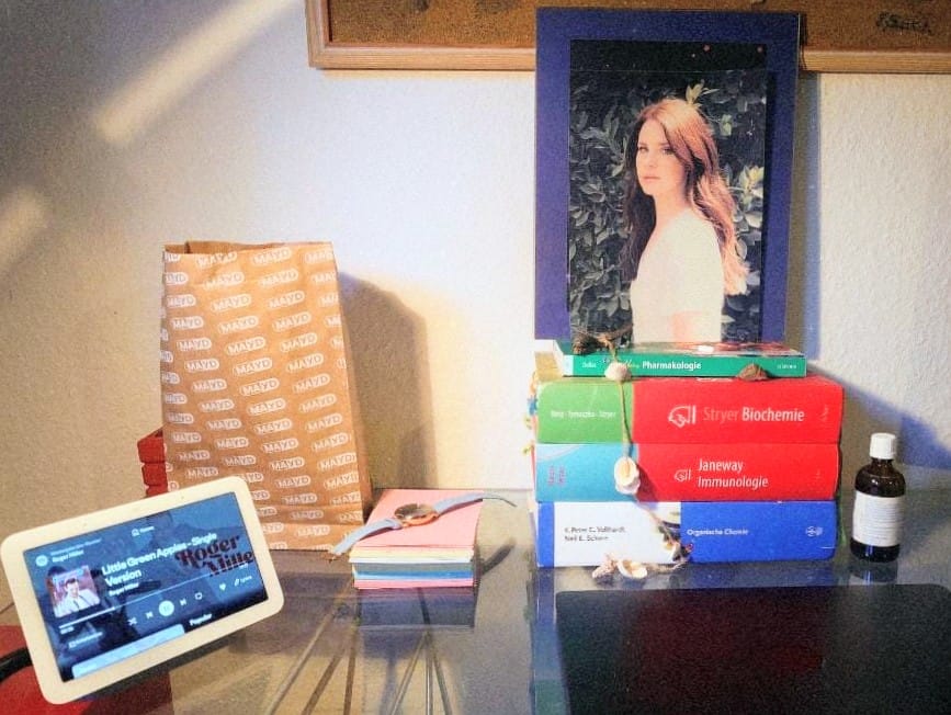 Schreibtisch der Autorin. Lana und Fachliteratur.