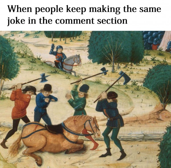 WIE FUNKTIONIERT’S? Ein besonders bitteres, lustiges oder seltsames Bild nehmen – und den Satz in der berüchtigten Meme-Schriftart dazusetzen. Außerdem führt sie die momentan auf (oder über) ihrem Höhepunkt befindliche „1“ (statt „ein“) prominent im Titel.