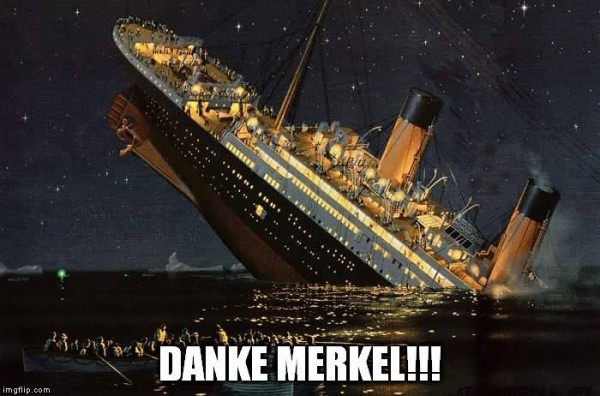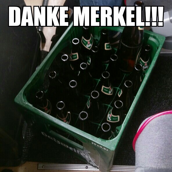 WARUM FUNKTIONIERT’S? Hierbei wirkt wie die Übernahme des PEGIDA-Sprechs. Dort hat sich der Hass auf Regierungspolitik so ritualisiert und personalisiert, dass „Danke Merkel!“ als eine Art vulgär ironische Emphase hinter Aussagen fungiert. Quasi die deutsche Wutbürger-Variante des englischen „…isn’t it?“ Diese universelle Floskel, die auch an so gut wie jeden Satz angehängt werden kann. [Edit: Das Original stammt aus den USA und lautet dort „Thanks Obama]
