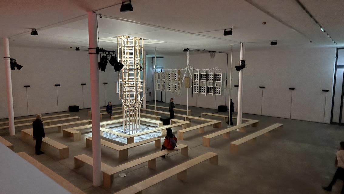 Mich zieht es zunächst in die Kunstwerke – oder ins KW, wie man in der mittlerweile zu 90 % englisch-deutsch sprechenden Hauptstadtszene sagt –, wo gleich eine reizvolle Doppeleröffnung ansteht: „String Constructions“ von Kazuko Miyamoto und „Starmirror“ von Holly Herndon & Mat Dryhurst.