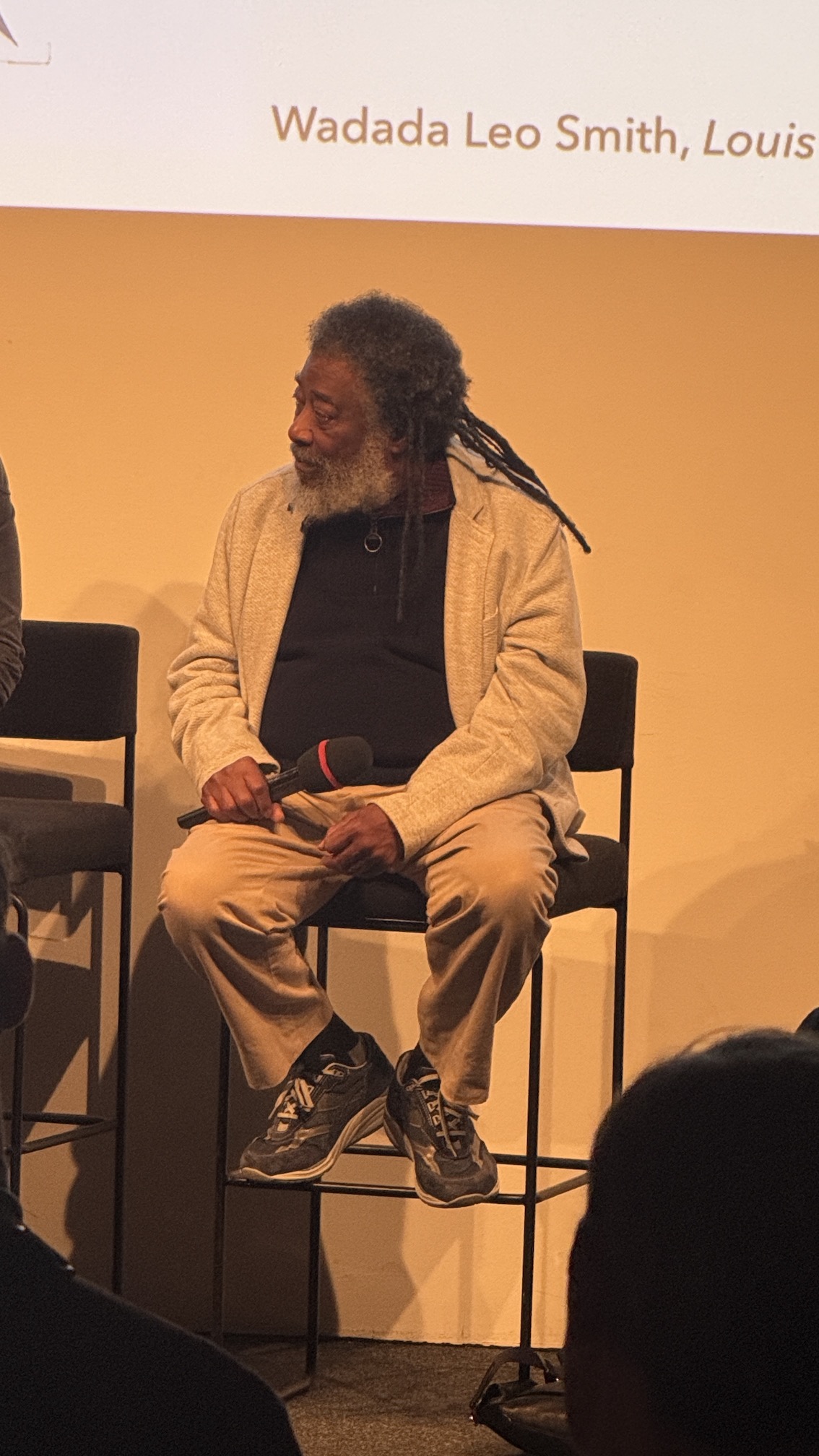 Mein Jazzfest Berlin 2025 beginnt in diesem Jahr so eindringlich wie nur möglich. Kurz vor dem ersten Show-Abend in den Berliner Festspielen versammeln sich der amerikanische Trompeter und Komponist Wadada Leo Smith, die Künstlerische Leiterin des Jazzfest Berlin Nadin Deventer und der Musikjournalist sowie Mitkurator des Jazzfest Peter Margasak im Bar-Foyer zu einem Gespräch über Smiths siebzigjährige Karriere – und speziell seine Notationsmethode und die visuelle Sprache seiner Komposition “Louis Armstrong Counterpointing“ (flankiert von “Drawing Sounds, Listening to Symbols: Interpreting a Score by Wadada Leo Smith“, einem Vortrag der Kuratorin Paola Malavassi) –,
