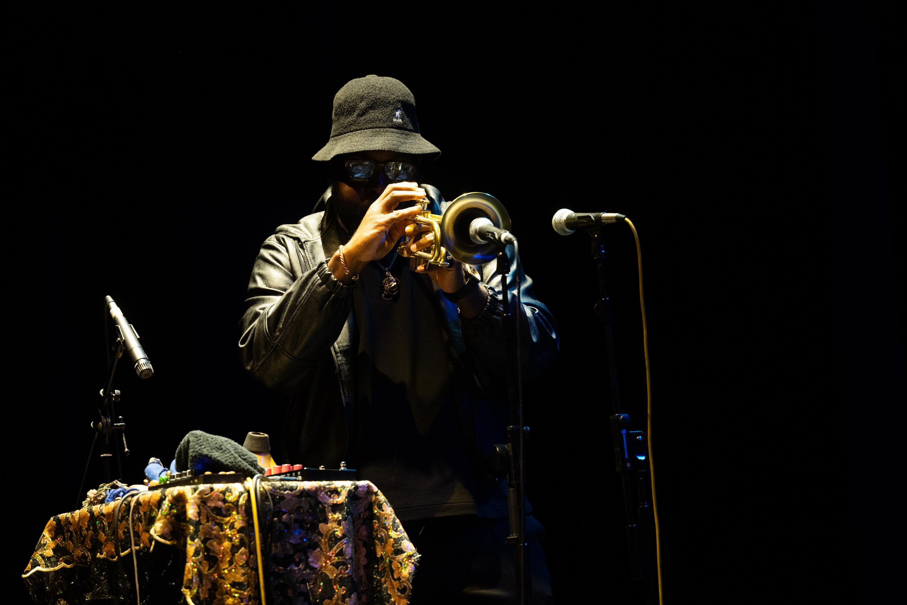 Der Abend endet auf der großen Bühne mit einem (von mir lange herbeigesehnten) Auftritt des Chicagoer Schlagzeugers und Bandleaders Makaya McCraven, zusammen mit E-Bassist Junius Paul, E-Gitarrist Matt Gold und Trompeter Marquis Hill.