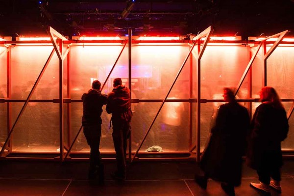 Ruben: Wir haben, wie zum Teil bereits dargelegt, bewusst mit gewissen Konventionen gebrochen, hatten nie das Interesse einen normalen Club herzustellen, der den gängigen Seh- und Erfahrungsgewohnheiten entspricht, sondern wollten mit dieser Clubinstallation ein sinnliches und intellektuelles Reflektieren ermöglichen, indem wir die Rollen Beobachter und Beobachteter in einem Clubkontext herausforderten – durch besagte Umkehrungen, durch das Ermöglichen und Verhindern von Einblicken. Damit arbeiten wir in unseren Arbeiten, wie angedeutet, gerne.