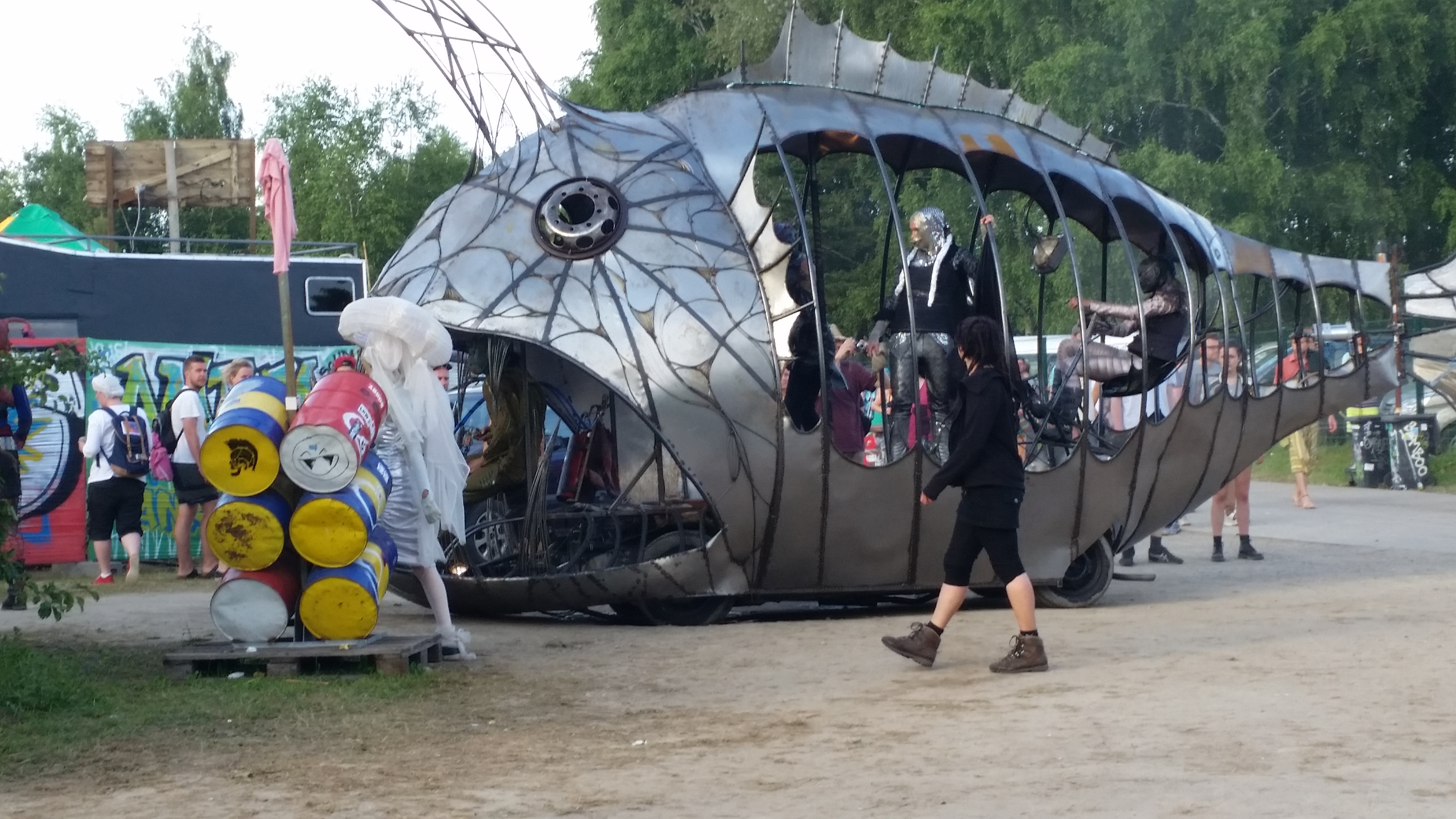 Sehnsuchtsort Festival. Einige wenige Tage Teil sein einer echten Parallelgesellschaft mit eigenen Regeln, auf der Suche nach Befreiung – und dazu läuft permanent Musik. Doch die subversive Kraft von Festivals ist weitläufig zernagt von Event-Kultur-Terror und der allgegenwärtigen Sponsoren’n’Branding-Scheiße. No Logo? Kann man sich bei Festivals nun wirklich abschminken. Es sei denn, man besucht die Fusion. Das Schlachtschiff im Tarnkappenmodus. Ohne Werbung für sich zu betreiben und ohne den Willen zur Selbstdarstellung wird die Fusion von den Medien weitestgehend in Ruhe gelassen, quasi ignoriert. Aber nicht mit Kaput. Denn eigentlich ist es längst nicht mehr so, dass auf der Fusion ein Verbot zu fotografieren herrschen würde (nur möge man nicht kenntlich andere Besucher ablichten). Diese Möglichkeit wollen wir nicht ungenutzt lassen. Und Stephie Stoffel hat uns zwei Hand voll ihrer Bilder des letzten Wochenendes überlassen.