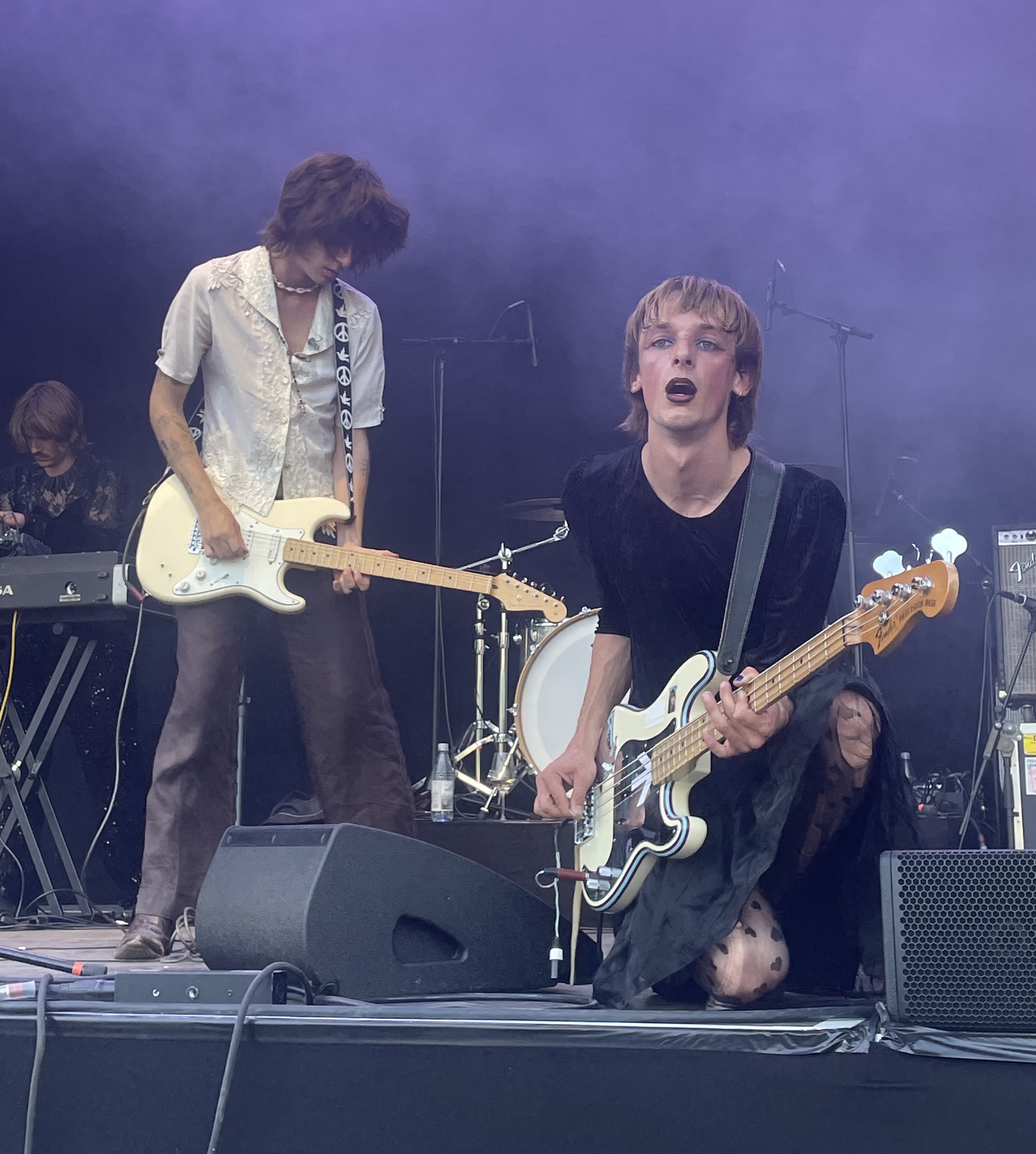 Zurück auf dem Draiser Hof stehen ab dem Nachmittag fünf Bands auf dem Programm. Für meine begrenzten Aufnahmekapazitäten und nach der schönen Schiffsfahrt fast zu viel für den restlichen Tag. Daher im Zeitraffer: Nach dem Entree von Philippa Kreisky, eine junge Künstlerin, die einen mit deutschem Indiepop sanft in den Nachmittag gleiten lässt, liefert der in London beheimatete Schotte Samuel Nicholson mit seinen drei Bandkollegen das Kontrastprogramm. So scheint es zunächst. Hinter der gitarrenverzerrten Blues-Rock-Fassade blitzt jedoch beim grimmig dreinblickenden Frontmann eine Zerbrechlichkeit auf, die seine raue Stimme immer wieder kippen lässt. Neu ins Line-up gerückt ist Nils Keppel, der mit seiner auch optisch reizvollen Band für Personal Trainer eingesprungen ist. Den größten Teil des Sets höre ich zunächst nur hinter der Bühne im Backstagebereich, da ich parallel ein Interview mit Hannes Wittmer führen darf. Wir sitzen etwas abseits unter einem Schatten spendenden Baum und es ergibt sich ein sehr nettes Gespräch, das wir weiter fortsetzen, auch nachdem das Aufnahmegerät schon abgeschaltet ist. Das Schlussdrittel von Keppel erlebe ich dann noch von der richtigen Seite aus und fange direkt Feuer in Anbetracht des tobenden Spektakels auf der Bühne, das im angesagten Gewand der Neuen Neuen Deutschen Welle erscheint. Mit ihrer unverbrauchten Energie und einer für eine Newcomer-Band erstaunlichen Präsenz, die sich vor allem im Wechselspiel zwischen Keppel und dem Keyboarder ergibt, stellt der eingesprungene Act die nachfolgenden Isolation Berlin fast in den Schatten. Und das will was heißen.