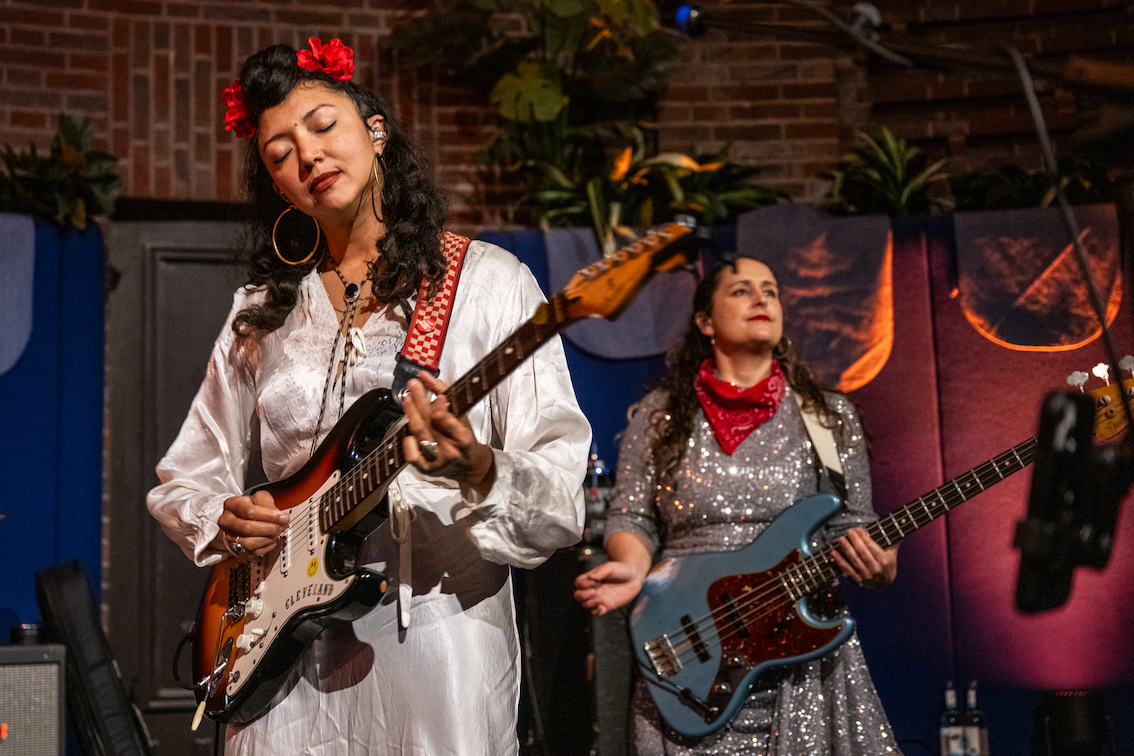 Nachdem sich bei Róisín Murphy warm getanzt wurde, ging es direkt mit psychedelischen Gitarrensounds und aufblasbaren Aliens im Pong (NRW-Forum) weiter. Die Indie Rock Band La Luz aus Los Angeles erfüllten den hohen Raum, der normalerweise das Foyer und Café des NRW-Forms ist, mit ihren mehrstimmigen Gesängen, wilden Riffs und treibenden Drums. Ein ungewöhnlicher Ort für ein Konzert, denn durch die runde Form des Raumes drängten sich die Menschen von verschiedenen Seiten um die Musikerinnen herum. Zudem gab es keine Bühne, was dafür sorgte, dass sich die Band auf Augenhöhe mit dem Publikum befand – sehr intim also. Trotz der cozy Atmosphäre ließen es sich La Luz aber nicht nehmen, abzurocken und die großen Gesten von Festival-Gigs auszupacken; wie zum Beispiel einen aufblasbaren Alien in die Menge zu werfen.