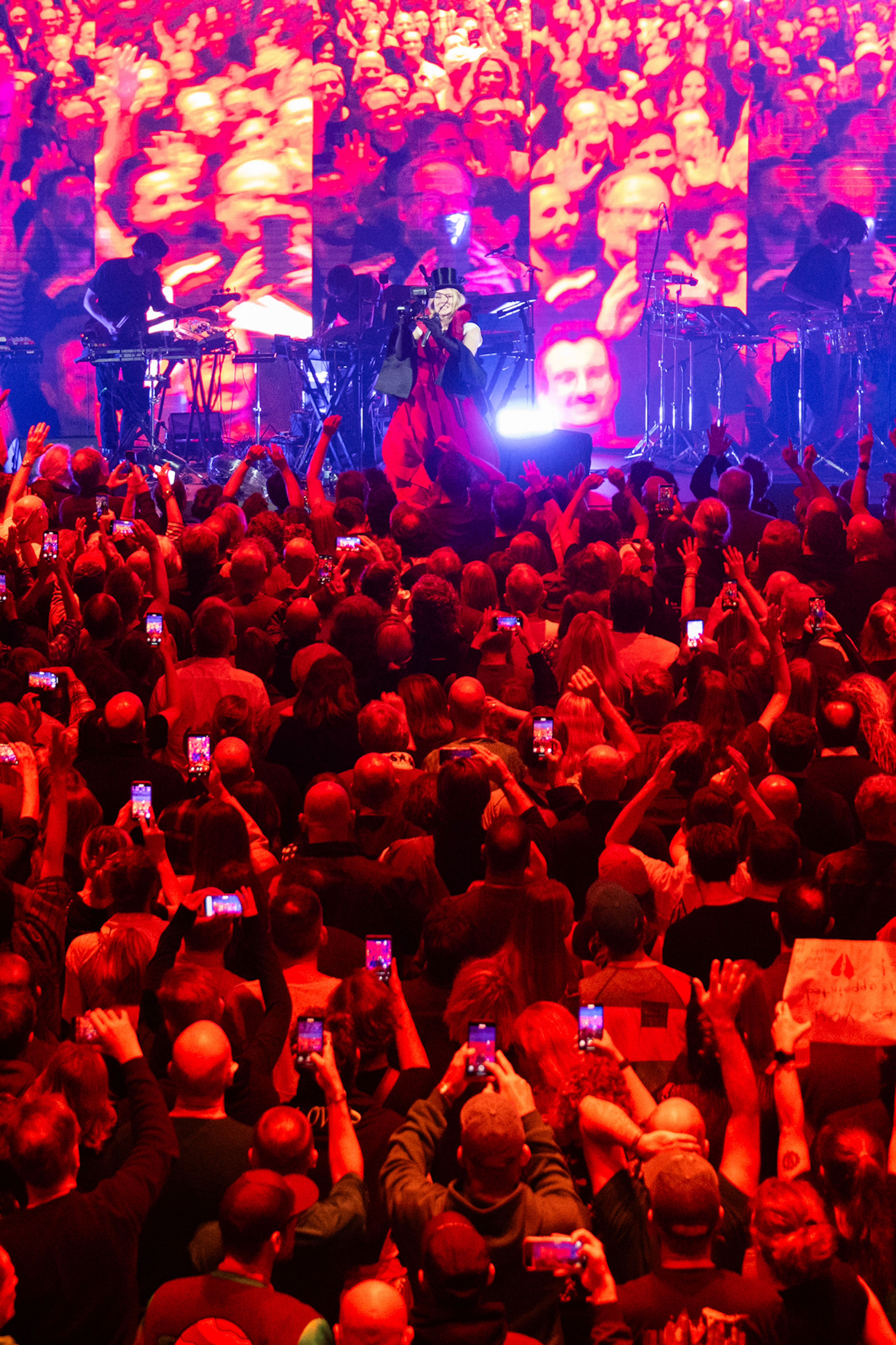 Das Festival startete am Donnerstagabend direkt mit einem Highlight: Róisín Murphy trat im ausverkauften großen Saal der Rheinterassen auf. Schillernde Kleider, lange Seidenhandschuhe und Zylinder ließen die Sängerin im Scheinwerferlicht wie eine Grande Madame des Disco House schillern. Ihr Auftritt: elegant, stark und voller Groove.