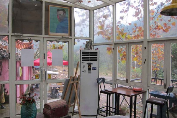 Weiter Nach Yiwu. Unsere vorherigen Recherchen ergaben, dass 2/3 der gesamten Weihnachtsdeko der Welt hier hergestellt werden. Wir erwarten Weihnachtsmärkte und Glühwein. Stattdessen werden wir von einer etwas grauen Industriestadt begrüßt. Wir diskutieren am Bahnhof mit vermeintlichen Taxifahrern, die sich aber als Dealer entpuppen, die uns gar nicht fahren wollen. Irgendwie bleibt die Situation aber wenig bedrohlich, es fühlt sich nach Slapstick an. Nach einer richtigen Taxifahrt bei der Roland und Koxi fast sterben, als der Fahrer mitten auf der Autobahn wendet, kommen wir im Gebi an. Der Ort war ein verlassener Dao Tempel, als er 2007 entdeckt wurde. Einige Kids sammelten sich um den Ort und hegten den Traum, einen DIY Space zu betreiben. Sie schrieben dem Bürgermeister Yiwus einen Brief und bekamen die Zusage. Er liegt zwischen einer Autobahn und einem kleinen Berg, an dem sich die Industrie schon ganz gut bedient hat.