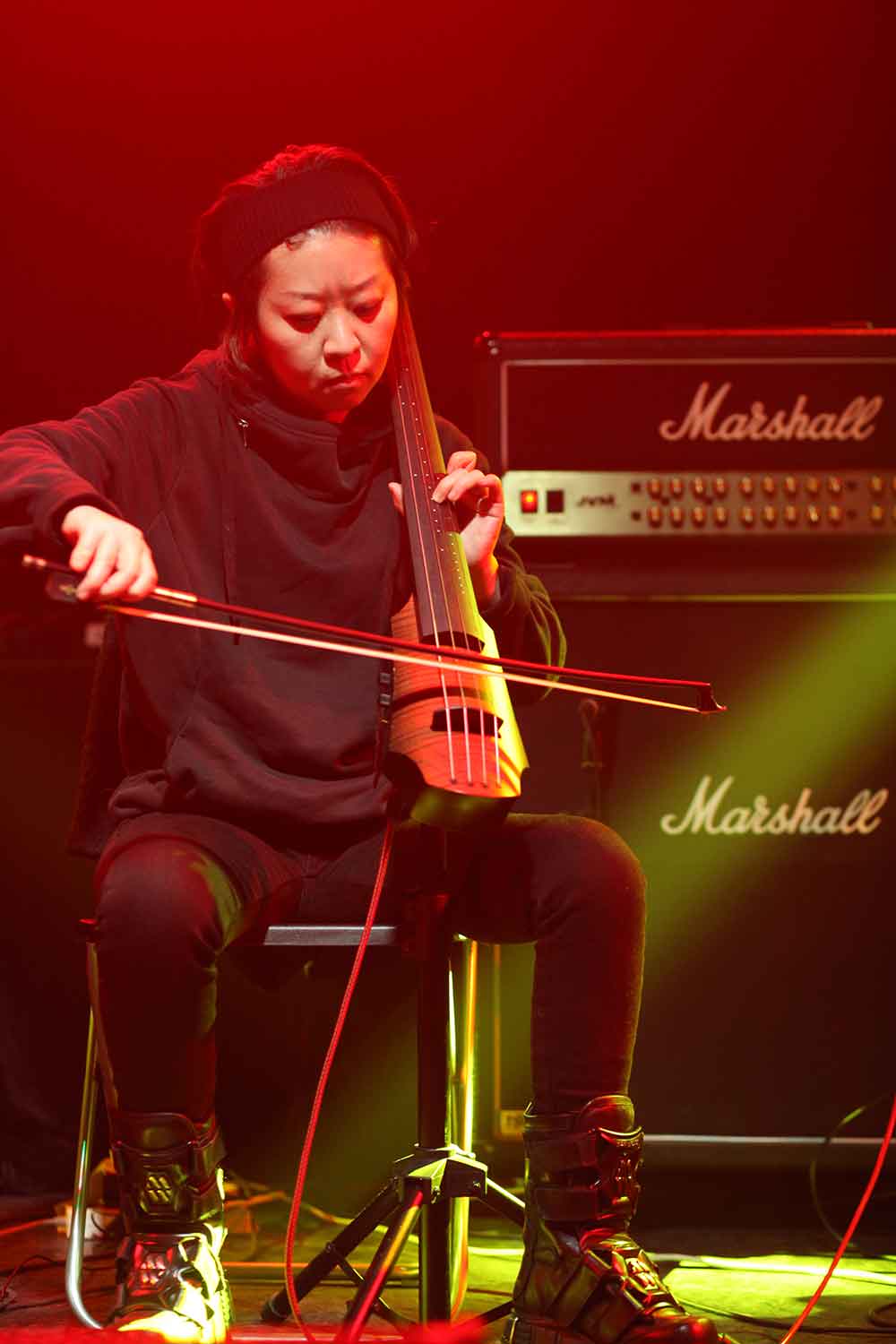 Dann: unsere erste Show im Yuespace. Mit uns spielen noch lokale Acts. Wir lernen Gogol kennen, eine Cellistin aus Peking, die ihr Instrument durch einen Marshall Verstärker bis zur Unkenntlichkeit verzerrt, dabei gleichzeitig aber nie ins Aggressive verfällt. Viele experimentelle Musiker kehren der Kunst irgendwann den Rücken und versuchen mit populäreren Musikrichtungen Geld zu verdienen, erzählt sie mir.