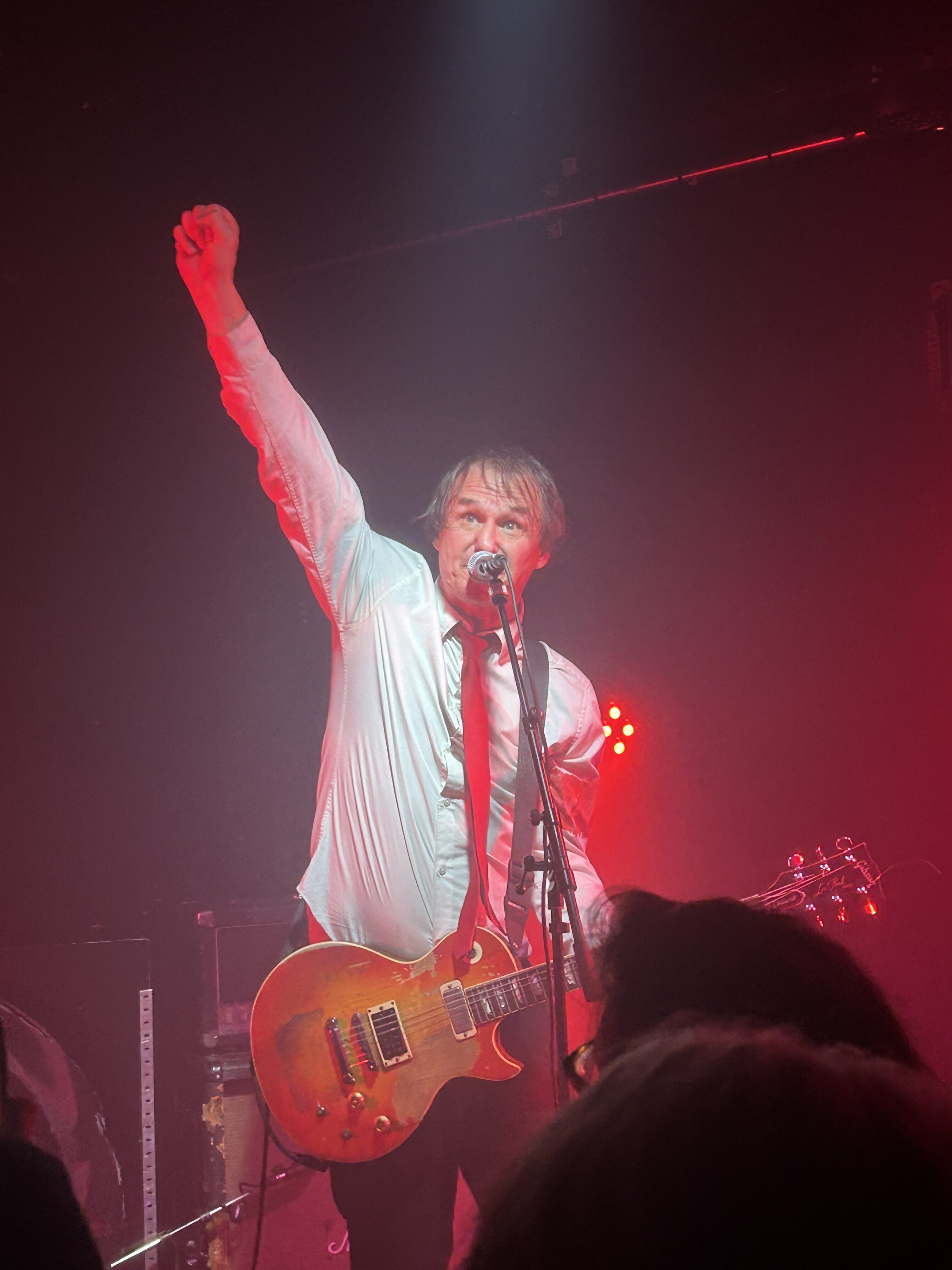 Musikalisch ist der Act schwer zu verorten: etwas Punkrock mit Referenzen an Bands aus der Frühzeit der Neuen Deutschen Welle. Zwischendurch wird aber auch ein Jam mit Standard-Akkorden angestimmt, das Saxofon bringt immer wieder eine jazzige Note ins Spiel. Eindeutiger sind dagegen die Texte, in denen unmissverständlich Stellung bezogen wird – vor allem gegen Rechts: „Fick die AfD“ und „Wenn ich dir auf die Fresse hau, bin ich ein schlechter Mensch?“ All das präsentiert die Grenzkontrollen-Gang mit einem unbekümmerten DIY-Charme und offenkundiger Lust am Experimentieren. Ähnlich stelle ich mir die Vibes vor, die vor vielen Jahren vom nicht weit entfernt liegenden Ratinger Hof ausgegangen sein müssen. Ich verstehe jetzt, warum man dafür von Köln nach Düsseldorf fährt.