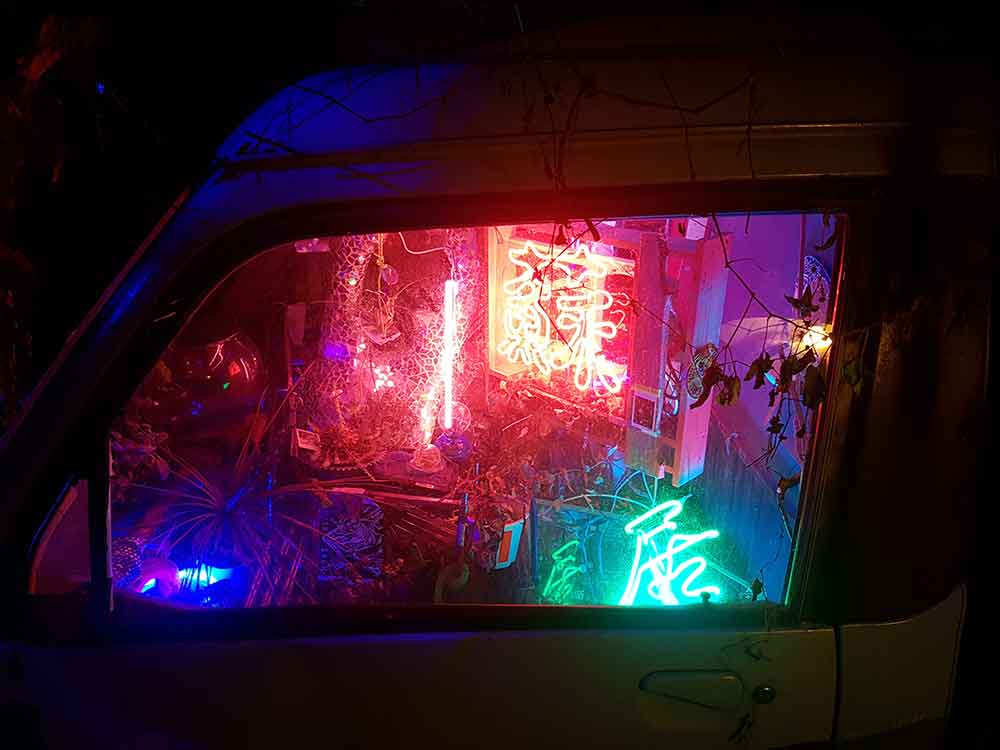 Nicht zufällig gehört das am Nordhügel von Kyoto (unterhalb des Philosophenweg) in einem unscheinbaren Haus gelegene Soto zu den beliebtesten Venues der Stadt unter den Musiker_innen und Künstler_innen der Region. Hier lebt seit 2016 die Band Kukangendai den Traum vom eigenen Laden. In 2017 gastierten hier (und nächtigten in der angegliederten Künstlerwohnung) unter anderem Inga Copeland, Don´t DJ, Synth Sisters, Taco und Alexandra Atnif. Sarah Szczesny erzählt, dass Koki Emura von EM-Records sie in den Laden gebracht habe, um Lieven Martens Moana (aka Dolphins Into The Future) und 7FO zu sehen und schwärmt von Örtlichkeit und Auftritten gleichermaßen. Lena Willikens ergänzt, dass beim nächsten gemeinsamen Besuch Kukangendai ihnen eine Führung durch das Haus, das ihnen übrigens gehört, gewährt hätten. Ihnen sei sofort ins Auge gestochen, wie geschmackvoll alles designt sei, vom Layout der Plakate über die Büroeinrichtung bis hin zur Bar.