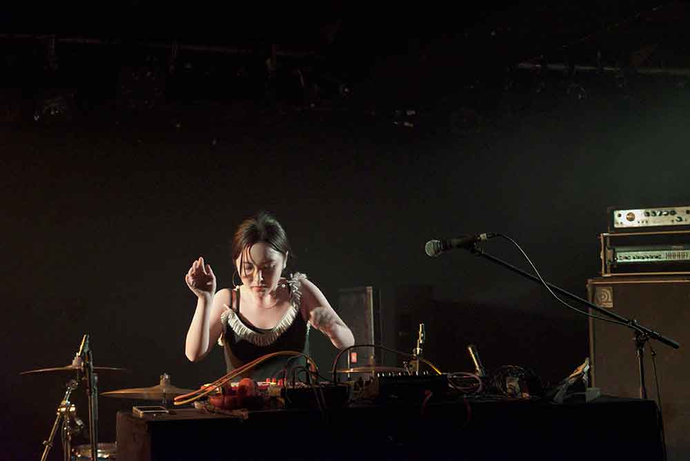 VII – Rie Lambdoll „Ich wünschte sehr, ich könnte den ganzen Tag nur Musik produzieren und Bilder malen” Gleich nach dem Auftritt von Turtle Yama ritt Rie Lambdoll im Conpass aus. Sie ist die eine Hälfte der Band Synth Sisters, mit denen sie 2016 auf 17853, dem Label von Chee Shimizu, die vielbeachtete und Mentor Akifumi Nakajim gewidmete Maxi “Aube” veröffentlicht haben. Nachdem es um die Sisters eine Zeitlang still war, soll nun in 2018 ein neues Album auf EM Records erscheinen. Während die Musik der Synth Sisters in der Tradition von Ambient-Bands wie Tangerine Dream steht, ist das Soloprojekt Rie Lambdoll deutlich dancelastiger ausgelegt und flirtet gleichermaßen mit den dunklen Seiten von Disco und Techno. Diese gewisse Düsternis wundert nicht, schließlich nennt Rie Lambdoll auch Scorn, das Industrial-Noise-Projekt von Mick Harris aus den späten 80er Jahren als großen Einfluss während ihrer Sozialisation. “Ich wollte solche Musik wie er produzieren und kaufte mir dafür mit 19 einen Synthesizer und einen Roland SP808-Sampler.”