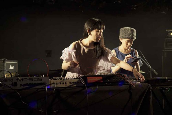 Es wird sich schnell zeigen, die beiden haben gute Vorarbeit geleistet und angetrieben von Neugierde und Lust, den repräsentativen Kern der lokalen Musikszene von Kansai aufgemischt, wie man die Region zwischen Kyoto und Osaka zusammenfassend bezeichnet. Man macht sich in diesem Teil von Japan wenig aus engen Genregrenzen und ästhetischen Berührungsängsten. Die Szene lebt von ihrem DIY-Selbstermächtigungs-Ethos. Allen ist klar, dass sie auf sich selbst gestellt sind in einem Land, in dem es wenig bis keine Förderungsstrukturen für Musiker_innen und Künstler_innen gibt, zumindest nicht in einem mit Europa vergleichbaren Umfang. Mit der Konsequenz, dass man zwar oft ein Murren und Stöhnen zu hören bekommt angesichts der Alltagsbelastungen, die das mit sich bringt, aber eben auch, dass der künstlerische Habitus noch viel mehr von Institutionsskepsis und einer sympathischen Enfant-Terrible-Haftigkeit bestimmt ist. Man hat sich noch nicht der Welt aus Anträgen und Sponsoring ergeben.
