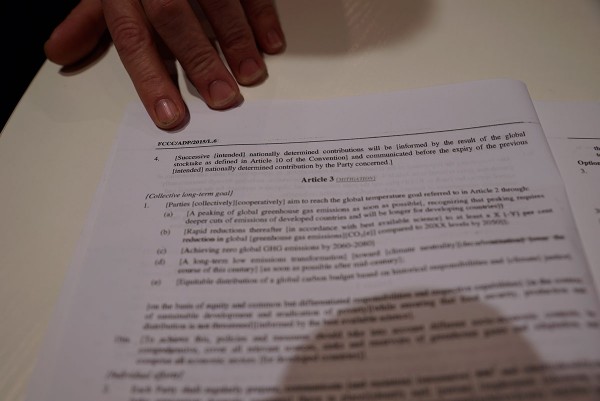 Genau. Es wurde vor vier Jahren in Durban eine Arbeitsgruppe eingesetzt, die Ad Hoc Working Group on the Durban Platform for Enhanced Action (kurz ADP), die seitdem gearbeitet hat. Das ist das Resultat ihrer Arbeit. Am Samstag wurde diese Arbeitsgruppe um 12 Uhr geschlossen und das Resultat der Arbeit an die COP, die Konferenz der Parteien, das höchste Entscheidungsgremium innerhalb der UN-Klimarahmenkonvention, weitergereicht.