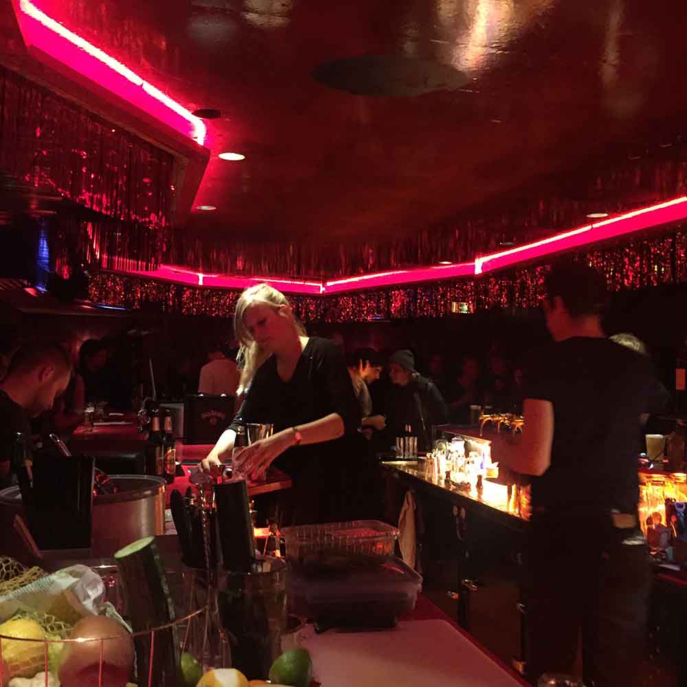Denise Oemcke: Ich habe bei der Hug Me Heimlich Ausstellungsreihe in der Boutique die Theke gemacht und dir immer sehr viele starke Gin Tonics gemixt, die du gut fandest, André. Als du dann via Facebook nach Leuten gesucht hast, habe ich mich beworben. Die Zusage kam mit der ersten Schichtanfrage – während ich meiner Mutter beim Halbmarathon zuschaute. Ein sehr einschneidendes Ereignis in meinem Leben. Konkret angefangen habe ich zur 3-Jahres-Feier im Oktober 2011.