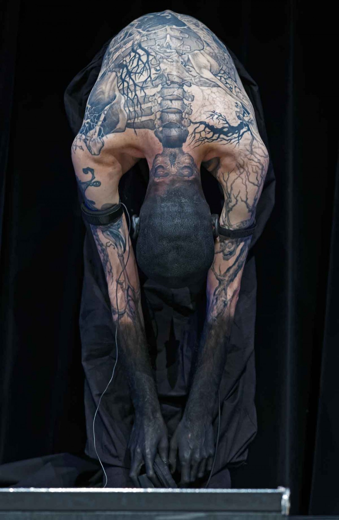 During the performance I try to turn myself into something other than me. It’s a great feeling. The day after the show my body is pretty dead though. It needs full rest, as for any other demanding performance art piece. Before a show, I make sure to warm up long and good, which obviously helps handle muscle tension the day after. Then, while I rest, I always wonder how the performance was, because I can never see anything! I try to reconstruct scenes in my mind through the vague feelings and sensations that linger.