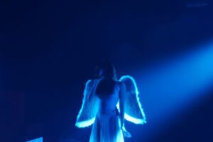 Mit wechselnden Kostümen hüpft Frontfrau Mica Tenenbaum über die Bühne, die voll mit mystischem …